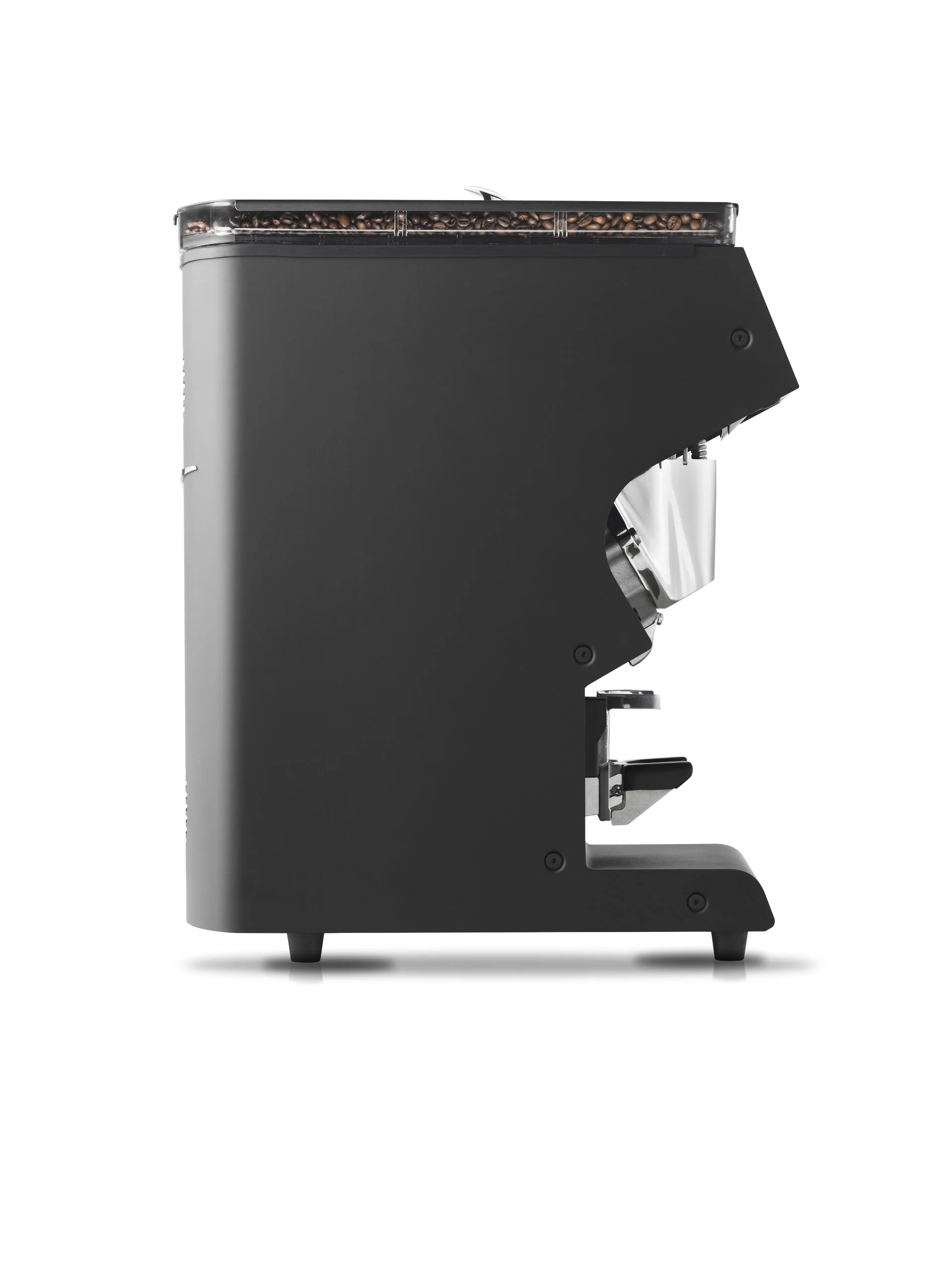 Ergonomics play a central role in the MY75 design. The hands-free portafilter support allows baristas to work efficiently without holding the handle during grinding, reducing fatigue and increasing speed during busy periods. Its low-profile body also improves visibility and workflow behind the bar.